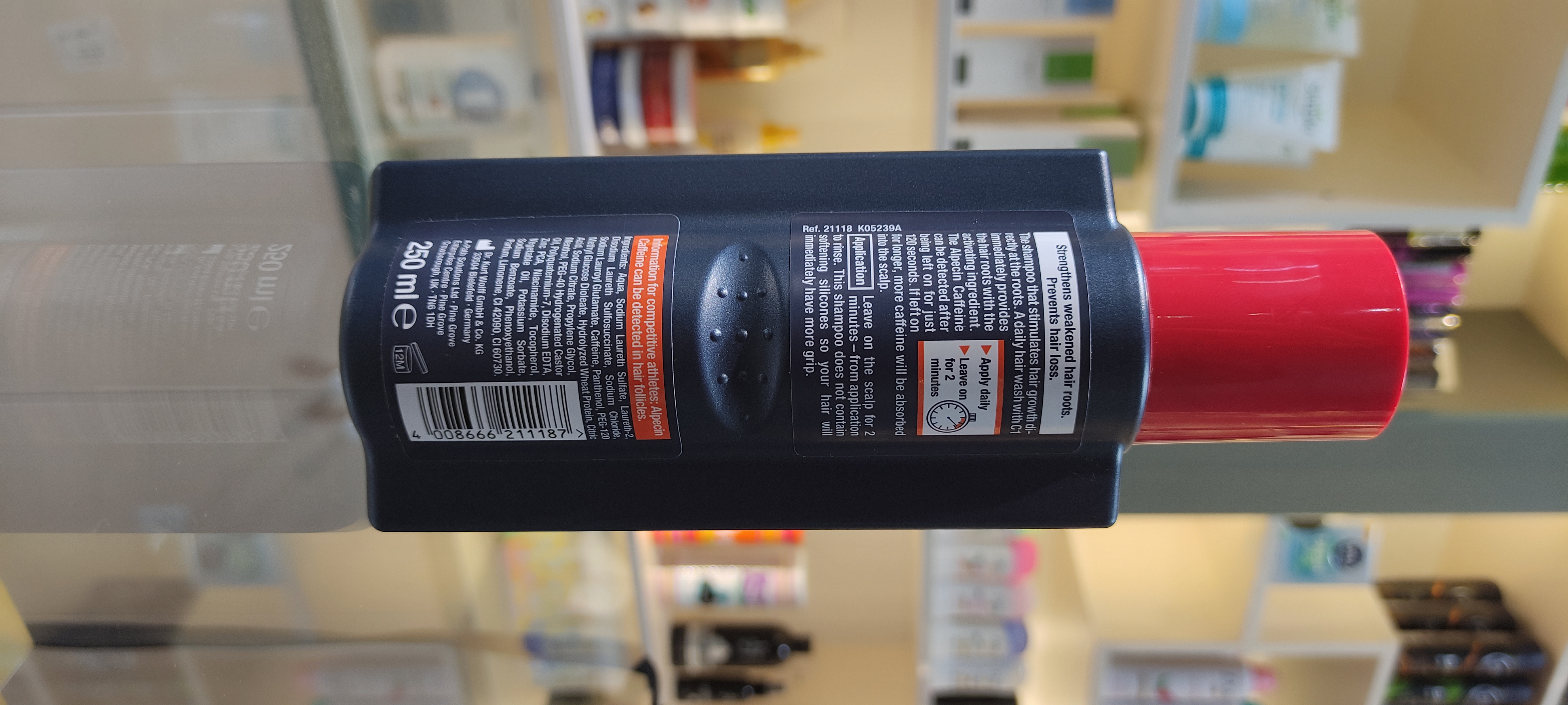 کافئین: مادهی کلیدی شامپو که با تحریک فولیکولها و بهبود جریان خون پوست سر، به تقویت مو کمک میکند.